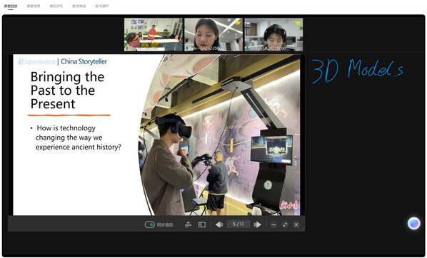 近日,外语教学中心主办的“China Storyteller”系列活动创新推出线上线下混合教学模式,首次在智慧学习空间中依托ClassIn软硬件系统,实现了线上与线下的同步融合教学。身处异地的同学通过ClassIn平台,可与线下同学全程共同参与听课与讨论,并与教师及其他学生实时互动,打破了物理空间的限制。